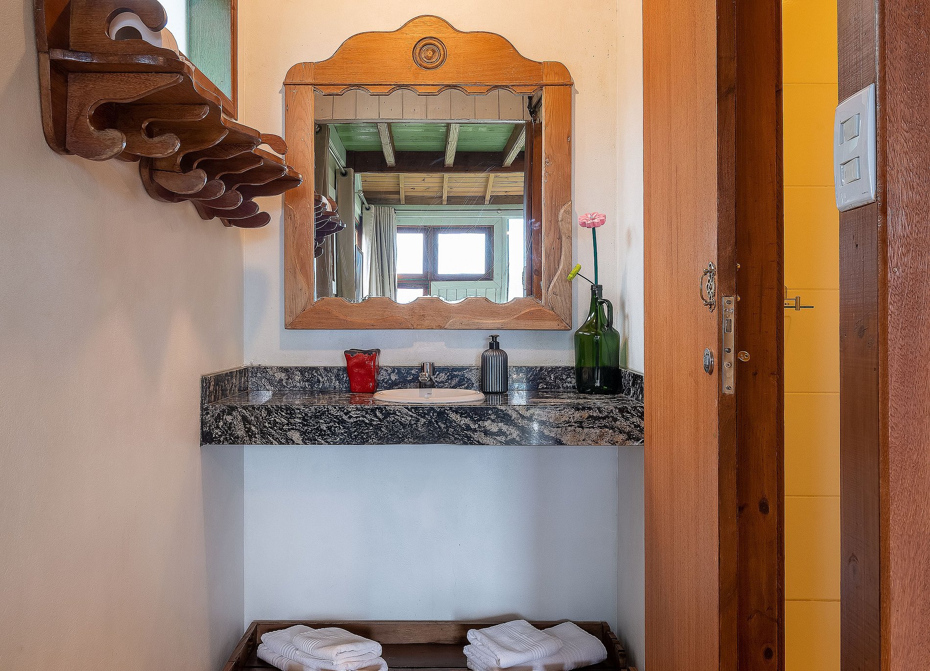A decoração com obras de arte e artesanato tradicional mineiro deixam o ambiente acolhedor, como o da casa da gente, sendo o lugar ideal para o seu descanso na Praia do Rosa.